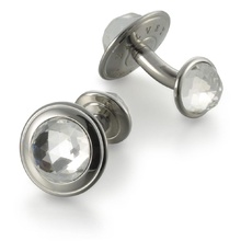 Запонки круглые 'titan', swarovski, сталь/прозрачный