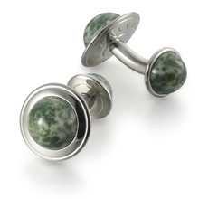 Запонки круглые 'titan', сталь/африканский нефрит
