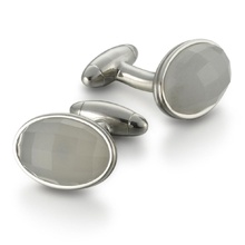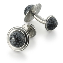 Запонки круглые 'Mars', сталь/снежный агат