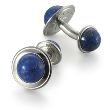 Запонки пуговичные двойные, черный оникс, лазурит