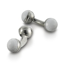 Запонки круглые 'Titan', снежный агат