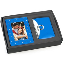 Набор: рамка для фотографии 5х7,5 см со стразами, зеркало, синий