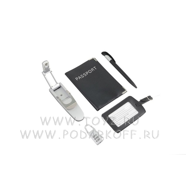 оставить заявку на Набор для путешествий: обложка для паспорта, бирка и кодовый замок для багажа, лампа с клипсой, шариковая ручка