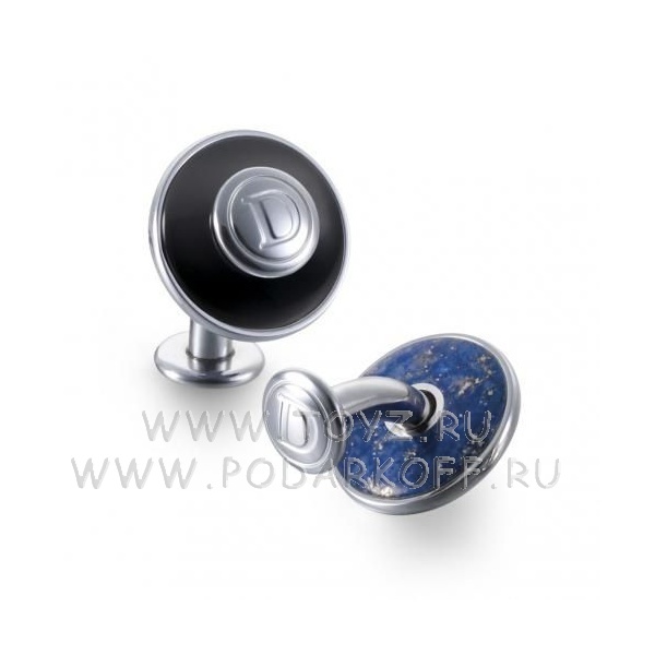 Запонки DALVEY в форме пуговицы из нержавеющей стали с черным ониксом и лазуритом. Упакованы в фирменную коробку с логотипом производителя.
