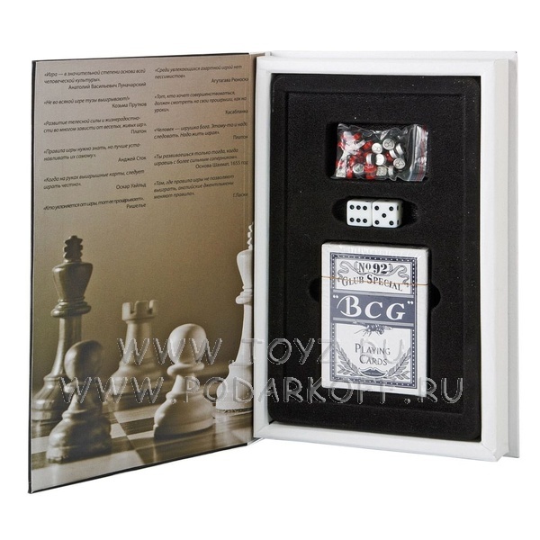 Набор «Книга Игр» c афоризмами знаменитых людей об игре: шахматы, нарды, кости, колода карт Увеличить... Набор «Книга Игр» c афоризмами знаменитых людей об игре: шахматы, нарды, кости, колода карт Увеличить... Набор «Книга Игр» c афоризмами знаменитых людей об игре: шахматы, нарды, кости, колода карт Увеличить...