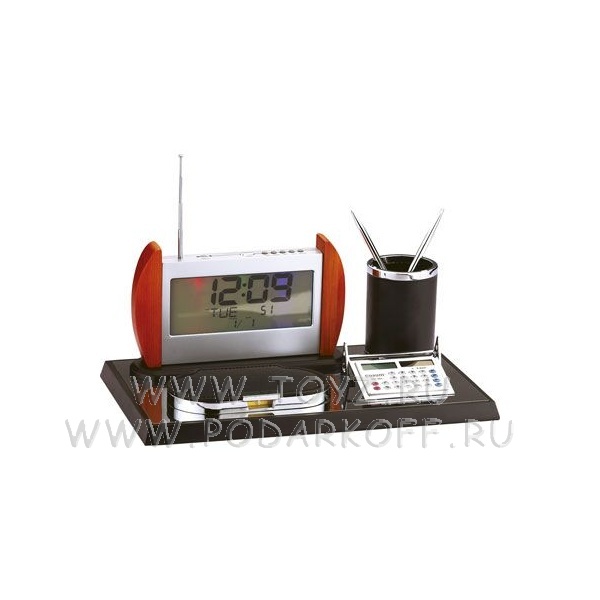 Настольный прибор 'Монреаль' с часами, радио, калькулятором, подставкой под ручки и бумажным блоком