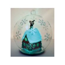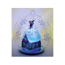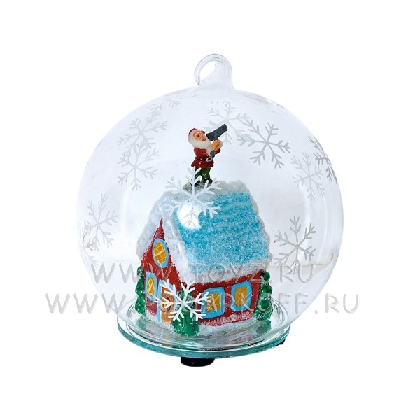 Новогодний шар с меняющей цвет подсветкой с занесенной снегом избушкой Деда Мороза внутри