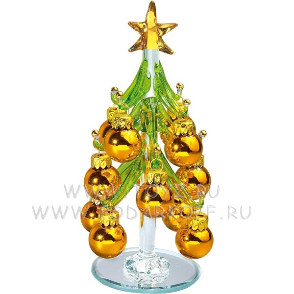 Главная » Корпоративные подарки » Новогодние подарки » Стеклянная ёлка на зеркальной подставке с миниатюрными шариками, золотистые