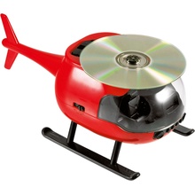 CD-плеер в виде вертолета, красный. Диск вращается, создавая иллюзию вращающихся лопастей вертолета